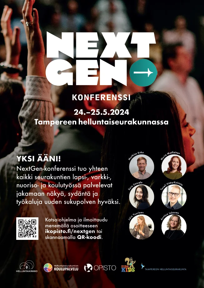 NextGen-konferenssi on valtakunnallinen tapahtuma kaikille seurakuntien lapsi-, varkki-, nuoriso- ja koulutyöntekijöille. Konferenssi rakentaa siltoja eri työmuotojen välille, sytyttää ja innostaa yhteisestä näystä ja antaa työkaluja työhön lasten ja nuorten parissa. Haluamme nostaa yhteisen äänen nuoren sukupolven puolesta!