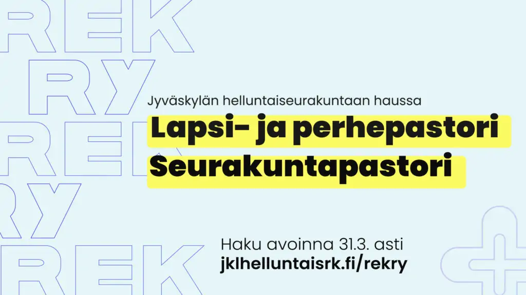 Lapsi- ja perhepastori sekä Seurakuntapastori Jyväskylään | Haut avoinna 31.3.2025 asti