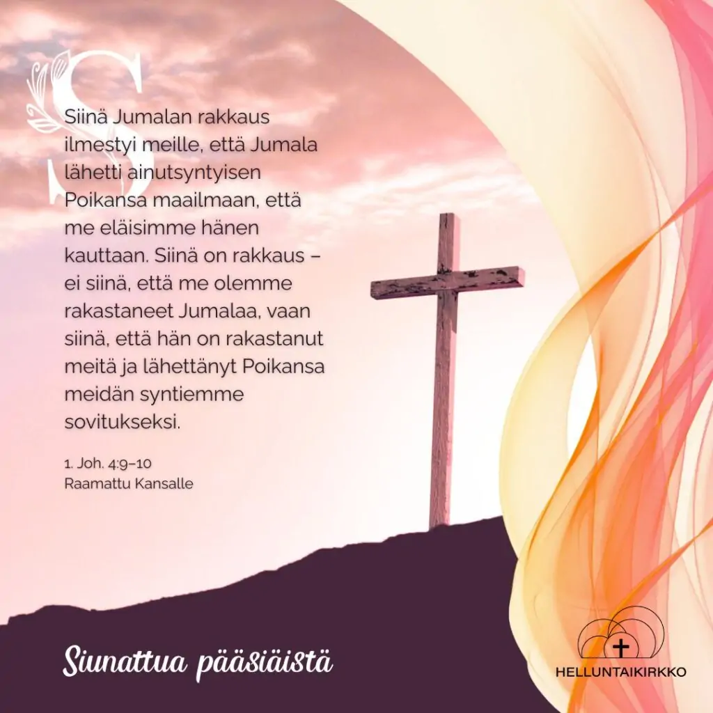 Toivotamme siunattua pääsiäistä apostoli Johanneksen kirjoittamin sanoin: ”Siinä Jumalan rakkaus ilmestyi meille, että Jumala lähetti ainutsyntyisen Poikansa maailmaan, että me eläisimme hänen kauttaan. Siinä on rakkaus – ei siinä, että me olemme rakastaneet...